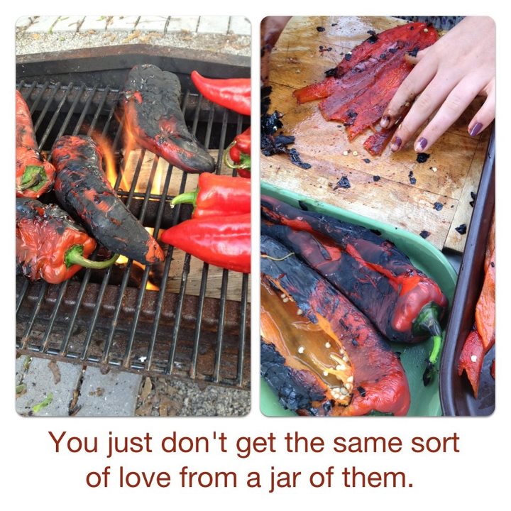 On a whim last fall, we roasted red peppers for the very first time. Actually now that’s a lie. I did spend a day several years ago with a friend and her family as they invited me to their family ritual.