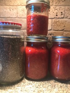 With strawberries just outside the door, fresh frozen rhubarb in the freezer, organic honey in the pantry all it took was a quick trip to the grocery store for chia seeds and I was ready to go!