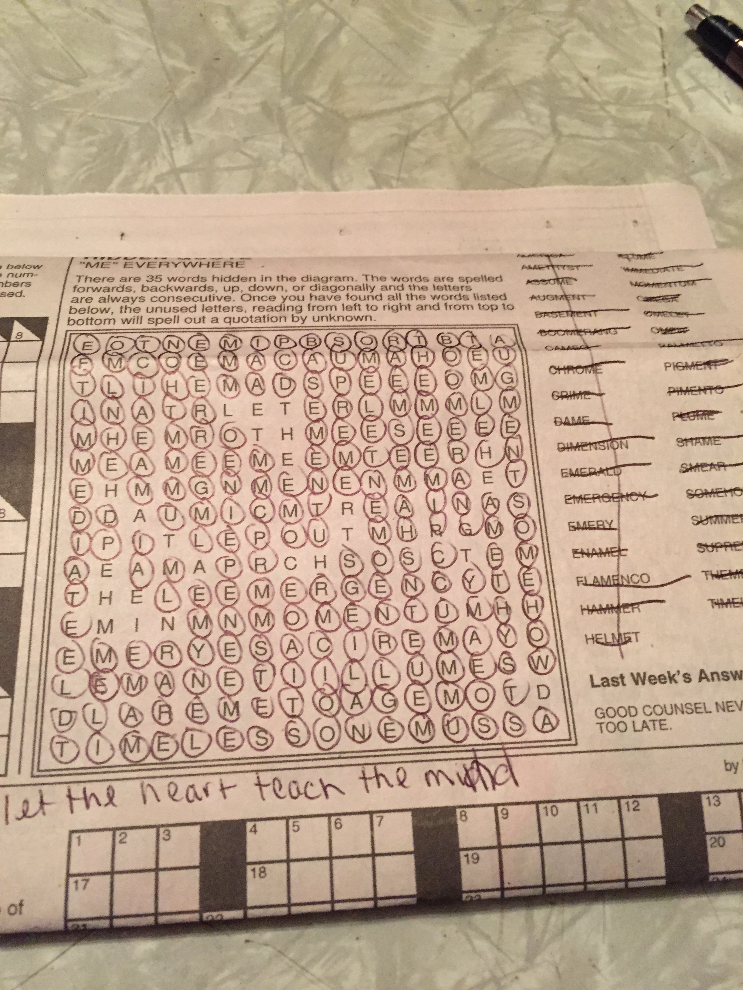 Huddled behind it, we, as children would find great humor in the funnies. But then, it was time to get down to work with the word search.
