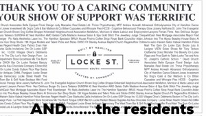So in opening that paper and seeing the ad and all the businesses thanking the city for their patronage, I’d like to extend a thank you, on behalf of all the residents of Locke Street. Thank you. Thank you for enjoying our neighbourhood, where you can stroll leisurely and enjoy our hospitality well beyond the shops. Thank you for your care, concern and support.